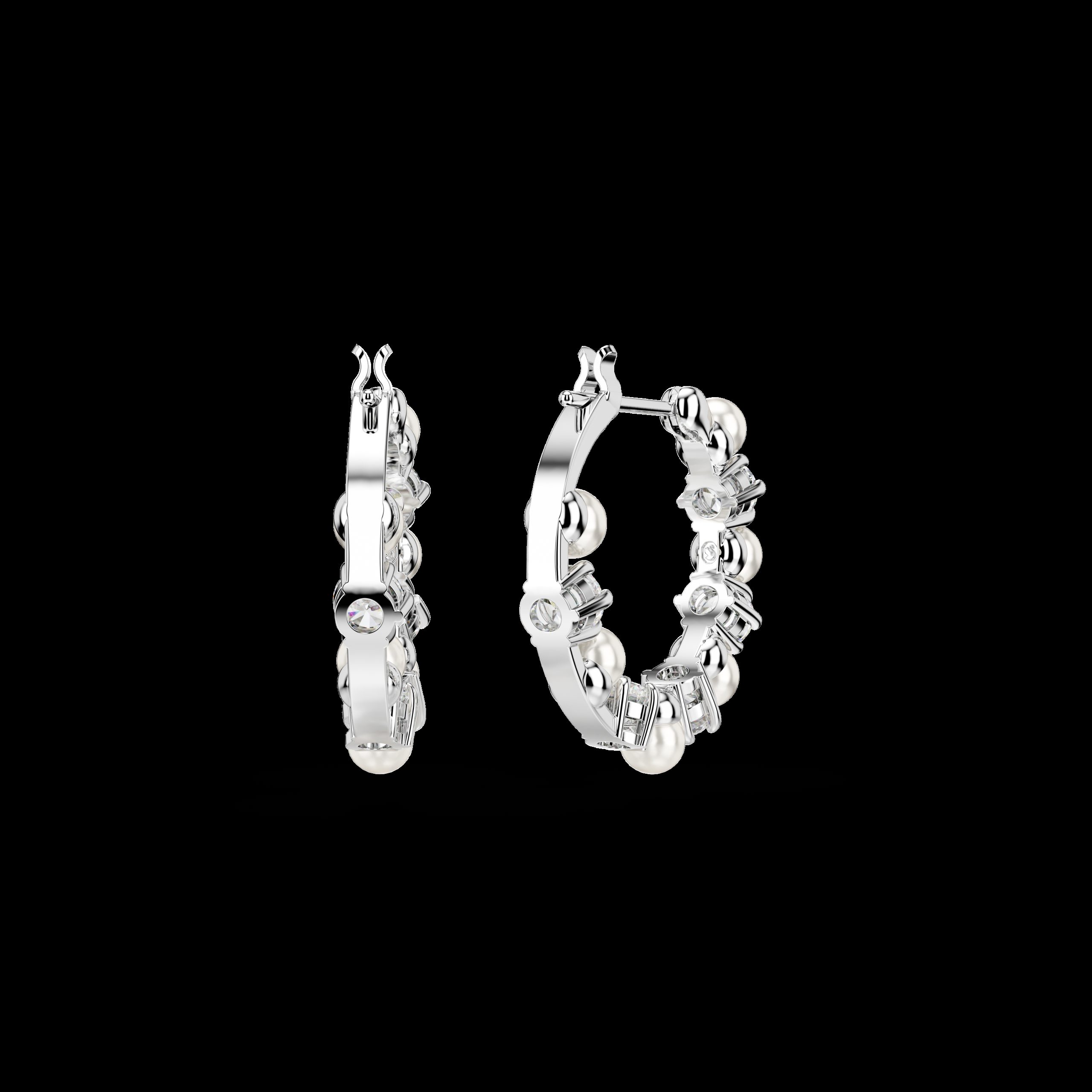 Questi orecchini a buco Matrix sono una rivisitazione unica e contemporanea del classico stile a cerchio. Ciascuna creazione รจ placcata rodio e decorata con Swarovski Zirconia e Crystal Pearls Swarovski alternate. Una dichiarazione di raffinatezza che renderร straordinario qualsiasi outfit.