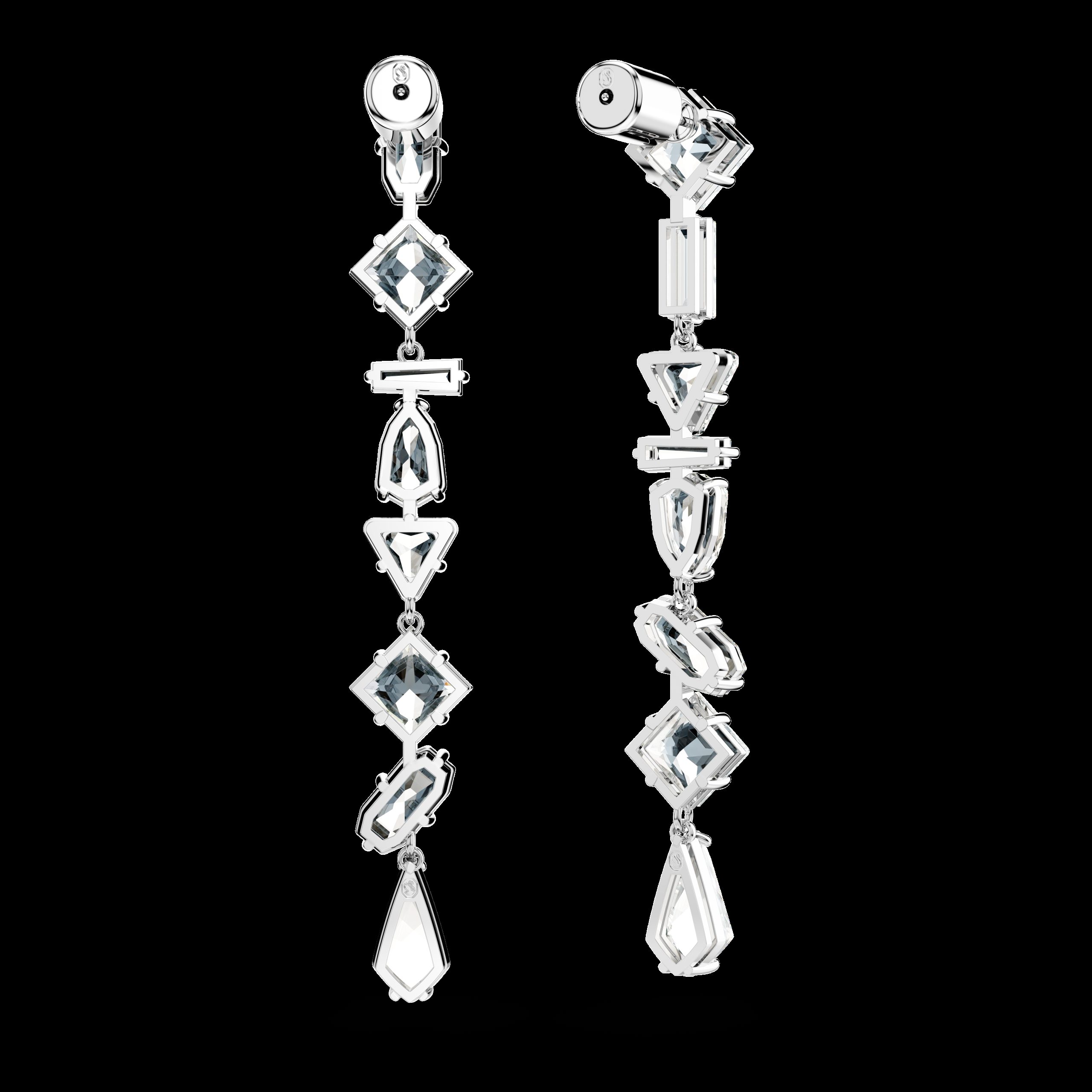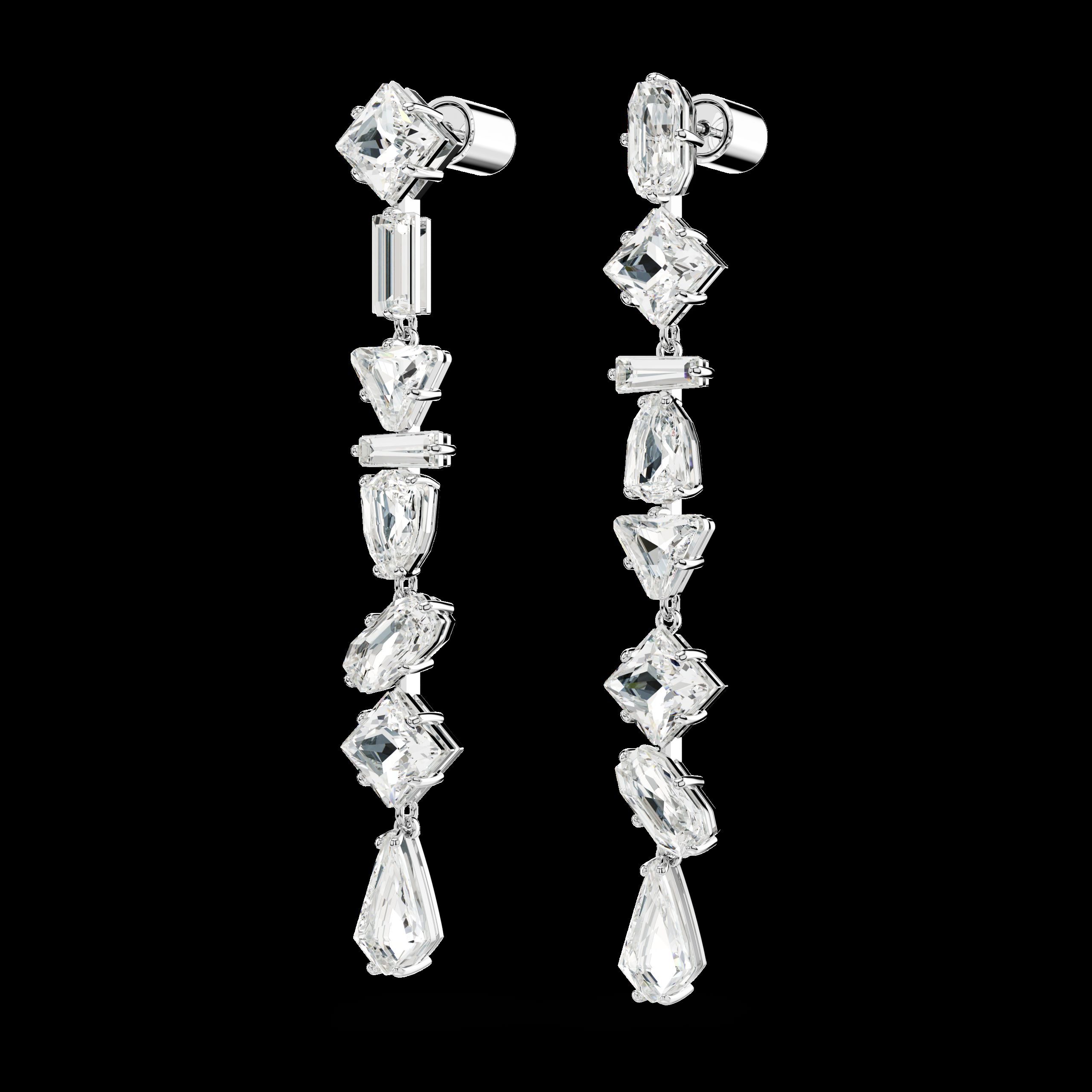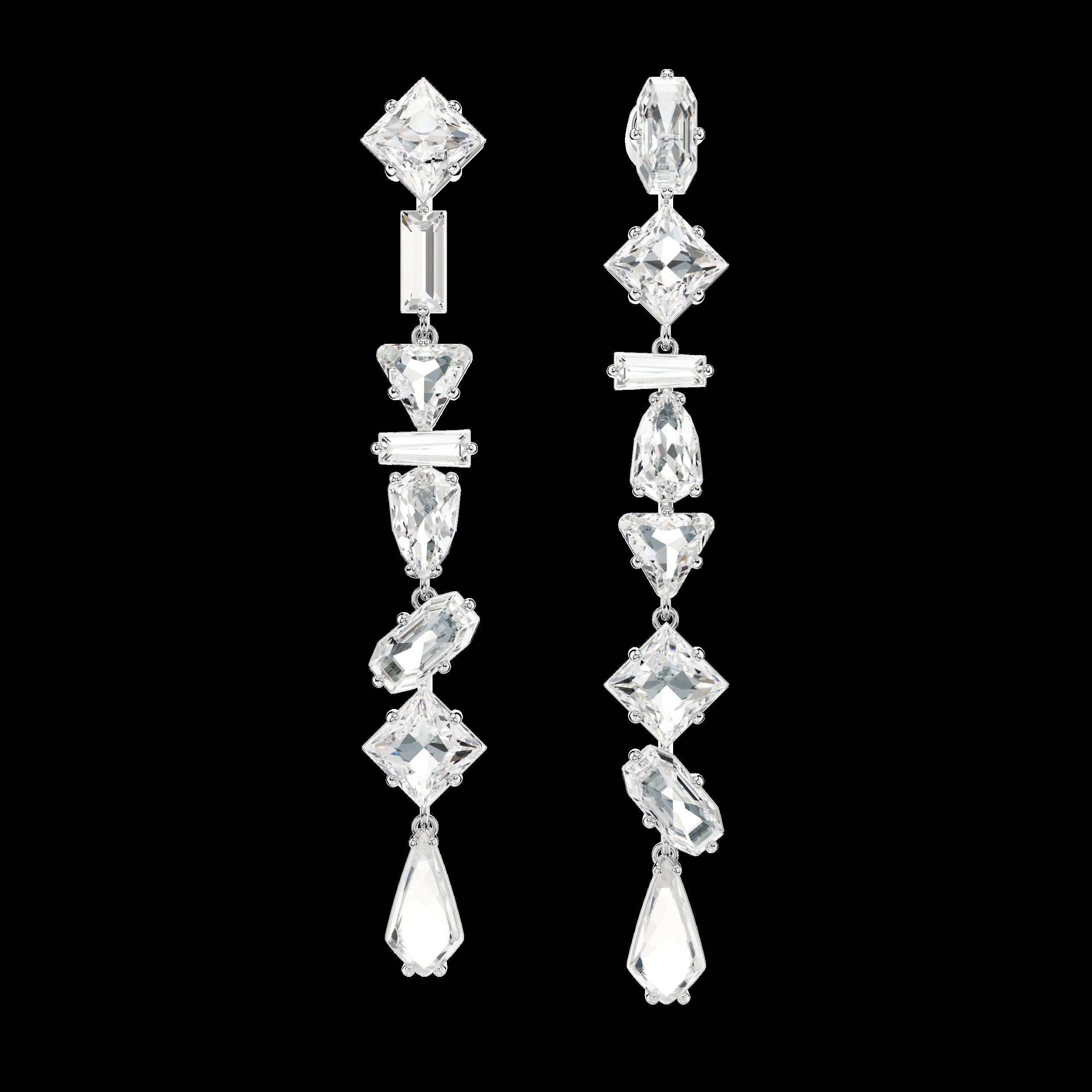 Questi splendenti orecchini Mesmera sono stati pensati per uno stile stravagante. Lo sfavillante design di ogni gioiello sfoggia una cascata di audaci cristalli con montatura a griffe, incastonati in una struttura placcata rodio e ogni pietra รจ realizzata in una forma diversa. Un meraviglioso mix di sfaccettature che catturano la luce fa di questo gioiello un regalo elegante per una persona cara.